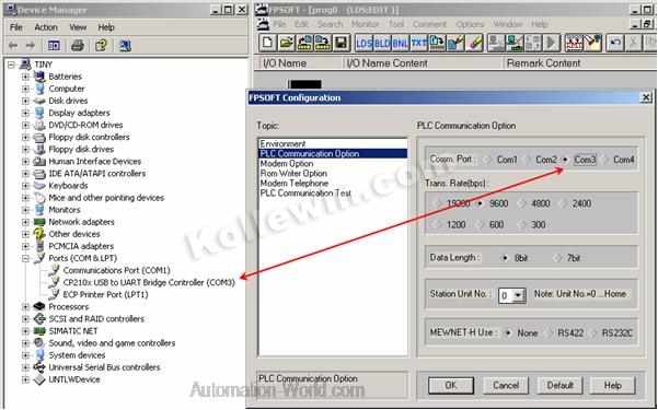 USB8513 programming cable simulates USB port as traditional serial port (usually COM3), which enables existing programming software(FPSoft) to communicate through simulated traditional port and PLC devices.